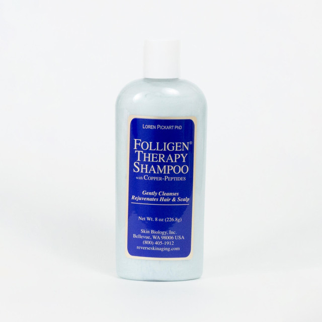 Шампунь фолліген (folligen therapy shampoo), як і спрей фолліген, містить високу концентрацію пептидів міді спільно з інгредієнтами, які захищають волосся від впливу навколишнього середовища. Шампунь розроблений з низьким Ph (5.8), що дозволяє застосовувати його на витонченому волоссі без ризику пошкодити стрижні волосся. Folligen шампунь дуже м'який і підходить для регулярного миття голови.
